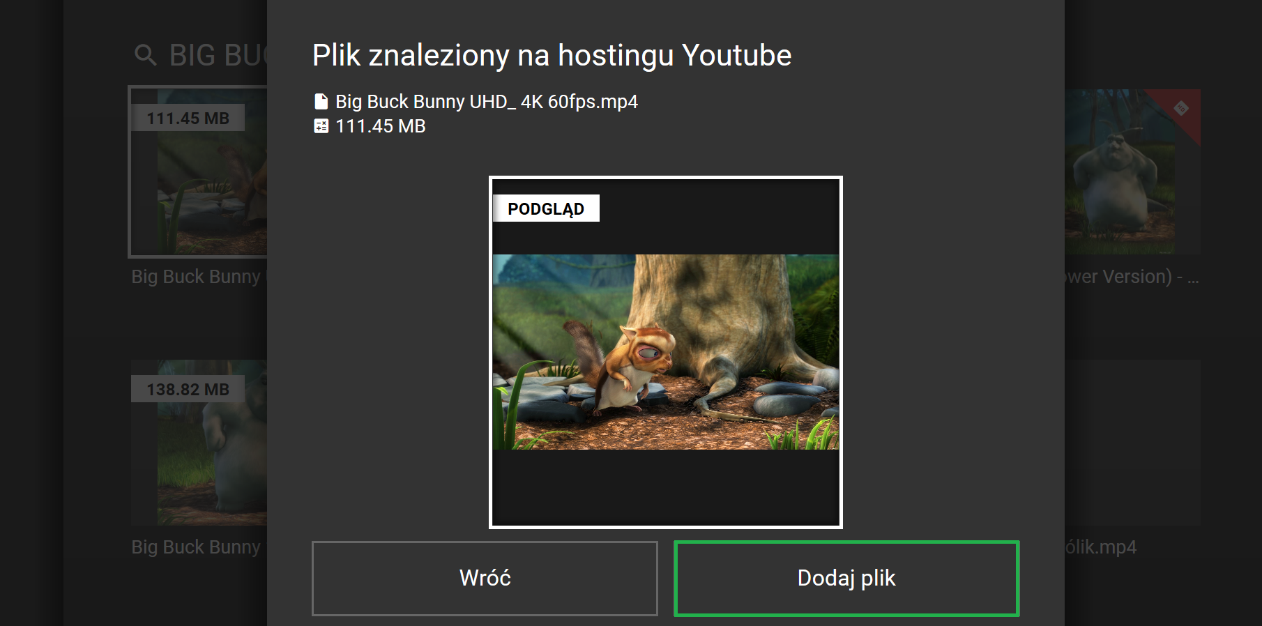 Jeżeli plik jest dostępny oraz posiadamy wystarczającą ilość transferu na jego pobranie, należy ponownie potwierdzić dodanie pliku do konta
