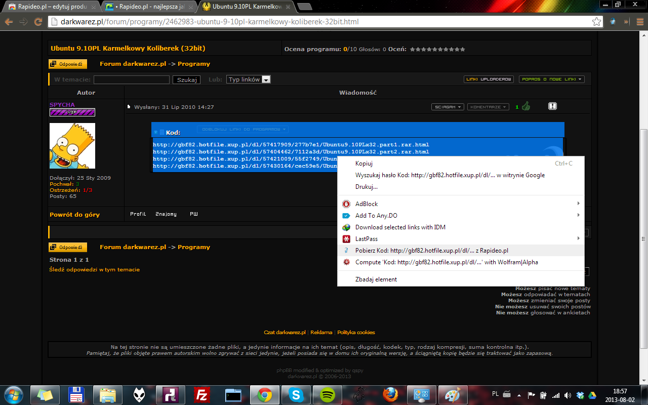 - mark the links and click the right mouse button and select "Download with Rapideo.pl" - you will be automatically redirected to the download page